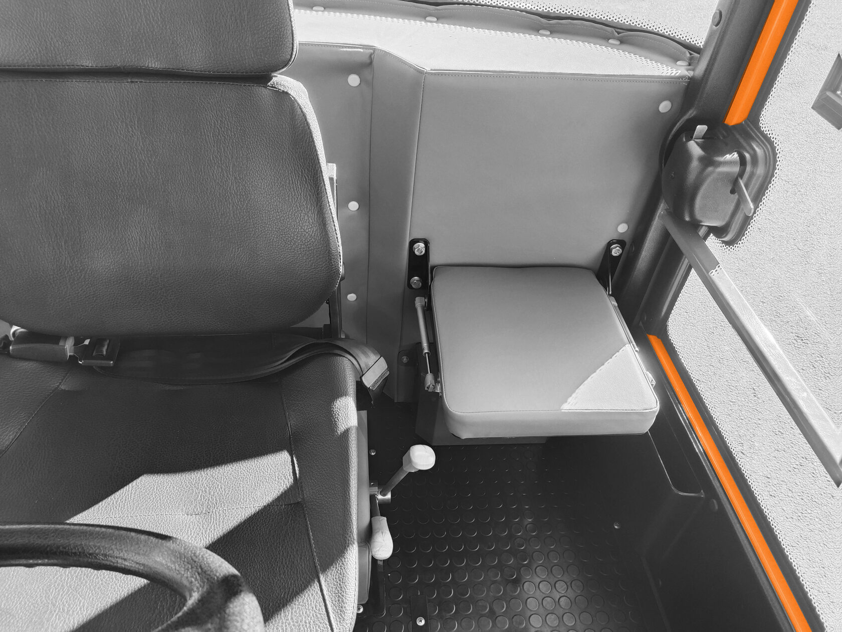 ЯРОСЛАВЕЦ имеет удобную в эксплуатации двухместную кабину, с центральным расположением водительского кресла и боковым откидным сиденьем пассажира.